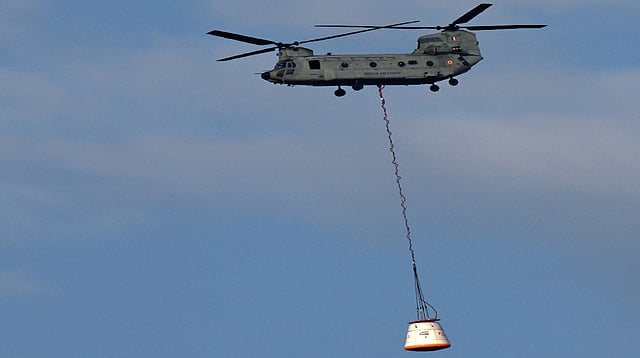 In the first IADT, a 4.8-tonne dummy crew module was dropped from a height of three km by a Chinook helicopter.