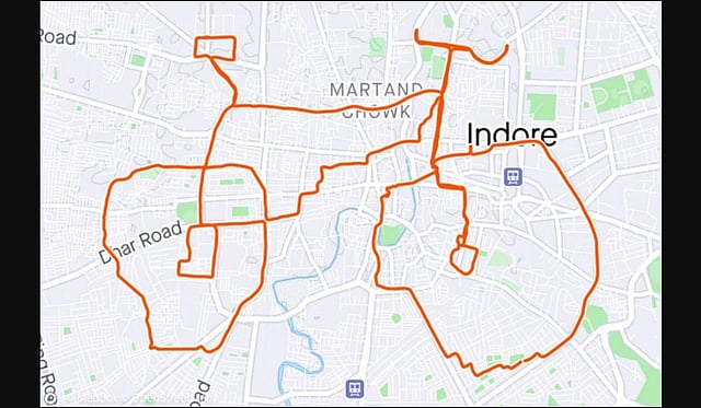 Indore | A group of 300 cyclists in Indore in Madhya Pradesh drew the pattern of a bicycle on a Global Positioning System, widely called GPS art, on Sunday on the eve of World Bicycle Day.
