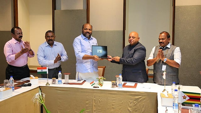 In a function, Kerala Industries Minister P Rajeev took a purchase order from Zimbabwe's Deputy Minister of Industry and Commerce Rajesh Kumar Indukant Modi.