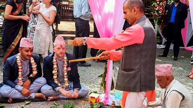 Kathmandu | Two young men, a Nepali and a US citizen, married here on Thursday, a first such instance involving a foreigner in the Himalayan nation after its Supreme Court allowed same sex marriage.