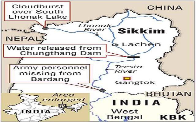 An outburst in the South Lhonak Lake on the intervening night of October 3-4, triggered a flash flood in the Teesta river basin, leaving 14 people dead and 102 others, including 22 army personnel, missing.
