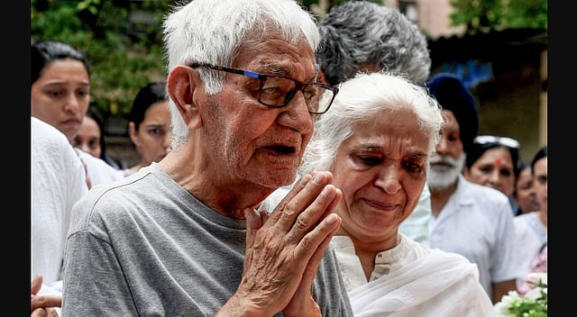 Air India captain and Sabharwal’s colleague Kapil Kohal stood numbed, struggling to maintain his composure, as his friend's mortal remains were consigned to flames at Muktidham crematorium in Chakala.