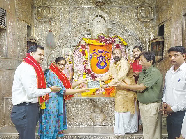 Kharjana | Indore's newly appointed Commissioner of Municipal Corporation, Harshika Singh, along with IAS officer Rohit Singh, visited Shri Ganapati Mandir Management Committee Khajrana and offered prayers to Lord Ganesha. The priests of the temple, Satpal Bhatt, Umesh Bhatt, Partha Bhatt, and Udit Bhatt, performed the worship ceremony. After the puja, the administrator took a circumambulation of the entire temple.
