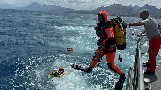 Porticello (Sicily) | Police divers resumed searching Tuesday for six people believed trapped in the hull of a superyacht that sank in a storm off Sicily, including a British tech magnate recently acquitted of fraud charges, his lawyer and a key defense witness at trial.
