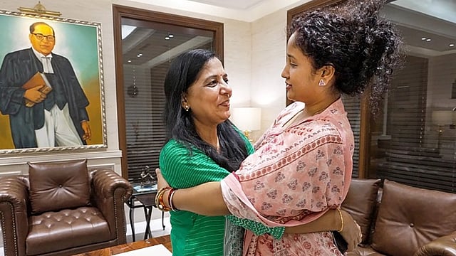 New Delhi | Former Jharkhand Chief Minister Hemant Soren's wife Kalpana Soren met jailed Delhi Chief Minister Arvind Kejriwal's wife Sunita Kejriwal here on Saturday.