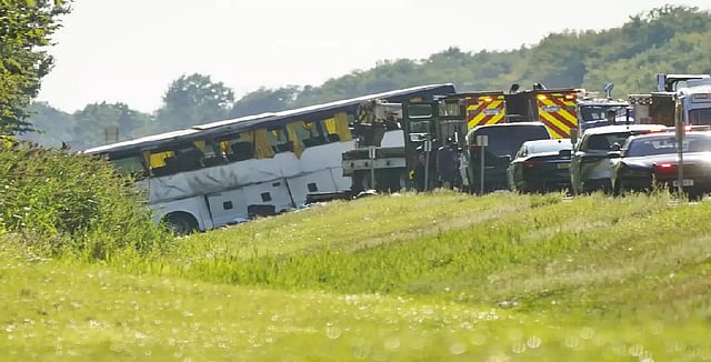 He said that the bus was “extremely damaged” and that many passengers had been ejected from the vehicle when it crashed. The driver was “alive and well”, he added.