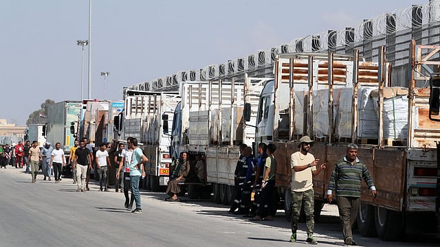 A UN official says aid trucks are to enter Gaza on Monday A UN official says 20 aid trucks carrying mostly food are expected to go into the Gaza Strip on Monday.