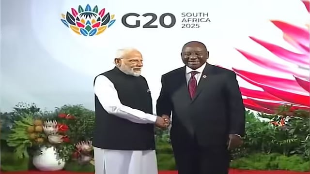 Johannesburg | Prime Minister Narendra Modi was on Saturday warmly welcomed by South African President Cyril Ramaphosa as he reached the venue for the G20 Leaders' Summit here.