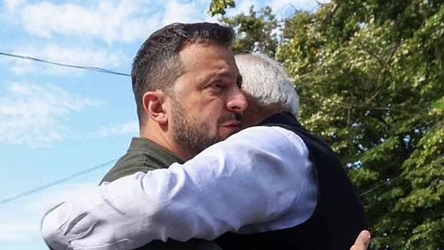 Kyiv | When Prime Minister Narendra Modi met Ukrainian President Volodymyr Zelenskyy here on Friday, he first shook hands and immediately gave him a warm hug.