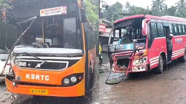 The Kerala State Road Transport Corporation (KSRTC) low-floor air-conditioned bus was en route to Kozhikode when it collided with a private bus coming from the opposite direction.