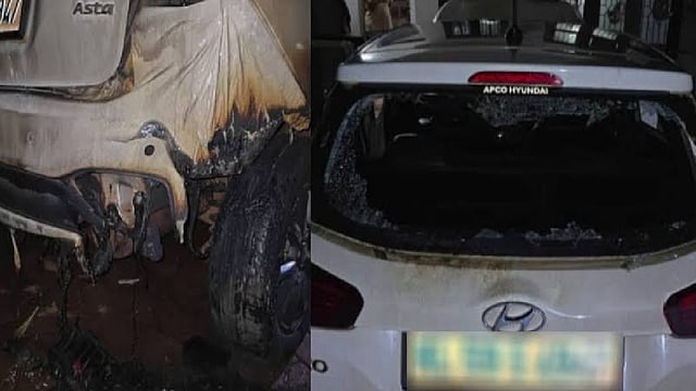 As per the FIR, the incident occurred around 12.30 am when unidentified persons trespassed into the house compound, set fire to the car parked there, and smashed window panes by pelting stones.