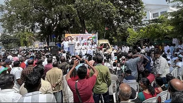 Palakkad (Kerala) | Congress and BJP workers on Tuesday staged protests in front of the mini civil station at Agali here over the death of a farmer, who died by suicide, on his agricultural land in this north Kerala.