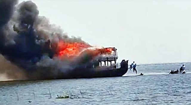 Alappuzha (Kerala) | A houseboat carrying guests caught fire at Punnamada on Sunday afternoon, officials said.