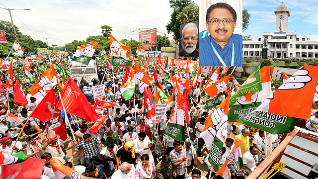 They said their protest was in response to the suspension of Registrar K S Anil Kumar, who had issued a notice cancelling a private event attended by Governor Arlekar at the Senate Hall, where a portrait of Bharat Mata holding a saffron flag was displayed.
