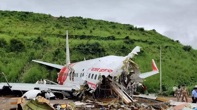 An Air India Express flight from Dubai with 190 people, including its six-member crew, overshot the tabletop runway during landing at the Kozhikode airport amid heavy rains on the evening of August 7, 2020.