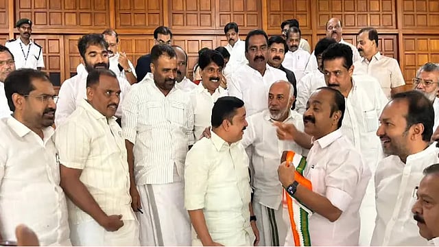 Thiruvananthapuram | UDF MLAs staged a protest inside the Kerala Assembly on Monday after the Speaker rejected an adjournment motion seeking a discussion on parole granted to convicted prisoners.