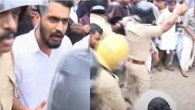 As the police restrained the woman SFI candidate, the members of her organisation intervened in large numbers and clashed with the officers, finally freeing her from them.