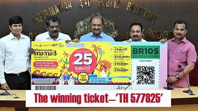 Kochi | The first prize-winning ticket of the Thiruvonam Bumper lottery, worth Rs 25 crore, was sold from a lottery outlet in Nettoor near here on Saturday.