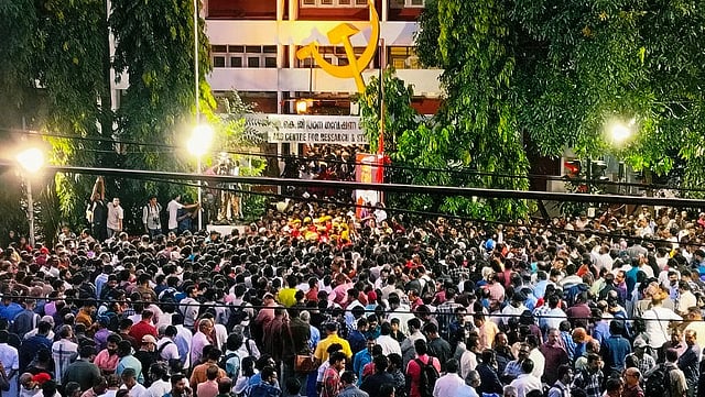 Thiruvananthapuram | Thousands of people, including senior citizens, youngsters, women, and students, thronged the busy road in front of the old AKG Centre here to catch a final glimpse of Marxist veteran V S Achuthanandan, whose body was brought there following his demise at a private hospital on Monday.