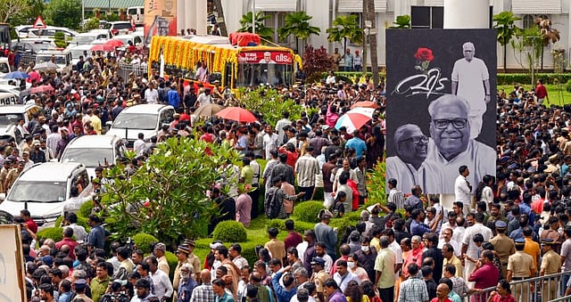 A massive crowd, including women, the elderly, and students, had paid their last respects when the body was kept at the old AKG Centre on Monday night.