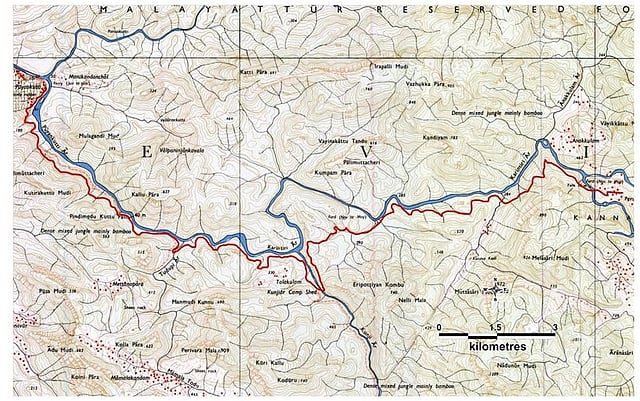 Over the years, as newer roads carved their way through the hills, ensuring ample connectivity, the yearning to resurrect the old route lingered in certain quarters. It was this quiet persistence that led the National Transport Planning and Research Centre (NATPAC) to commission the Kerala Forest Research Institute (KFRI) to undertake an environmental appraisal of two critical missing links through forest terrain - one of them being the long-abandoned Aluva-Munnar Road. In their 2005 report, KFRI scientists S Sankar and P Vijayakumaran Nair said the old alignment was cloaked in dense vegetation of trees and reed brakes, with no human habitation along it. Their assessment warned that reviving this route would cleave through nearly 400 sqkm of unbroken forest in the Pooyamkutty valley, shattering one of the region’s last great green lungs. The Pooyamkutty–Perumbankuthu stretch received a damning environmental score of minus 64 - a clear red flag from science to ambition.