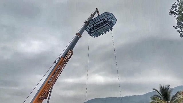 Idukki (Kerala) | Four tourists, with two children among them, were stranded about 150 feet above ground in a ‘sky-dining' restaurant near Anachal on Friday afternoon after the crane lifting the restaurant malfunctioned.