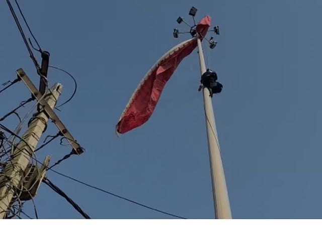 As the Fire department did not have a ladder which was tall enough, the two were rescued after lowering the pole