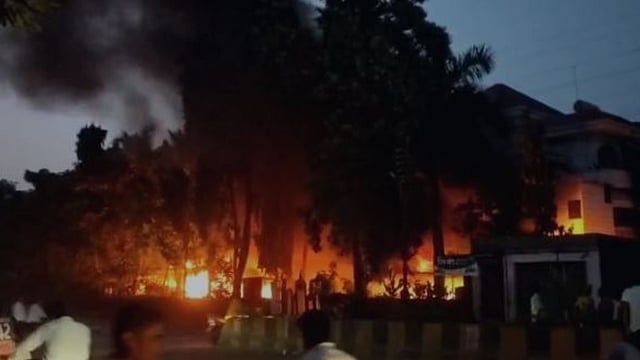 Beed (Maharashtra) | Amid the ongoing agitation for Maratha reservation in Maharashtra, a group of pro-Maratha reservation protestors torched the office of the Nationalist Congress Party (NCP) in Beed city on Monday.