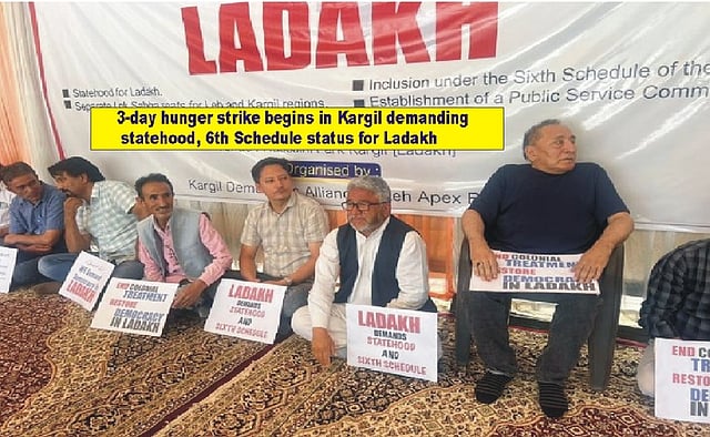 Kargil | A three-day hunger strike jointly organised by the Kargil Democratic Alliance (KDA) and the Leh Apex Body (LAB) in support of their demands including statehood for Ladakh and its inclusion in the Sixth Schedule of the Constitution ended with a massive rally here with participants warning to intensify their agitation if the central government continues its "delaying tactics" to hold fresh round of talks with them.