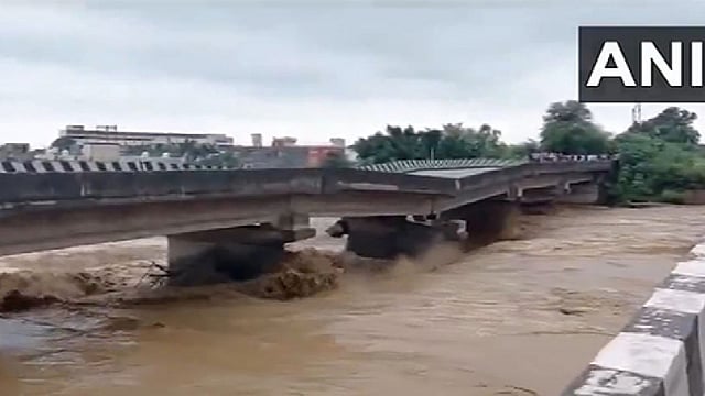 A bridge near Logate Morh on Jammu-Pathankot highway was damaged in the middle due to overflowing of Sahar Khad nallah following heavy rains in Kathua district, the officials said, adding the traffic on the highway was diverted through the alternate bridge.