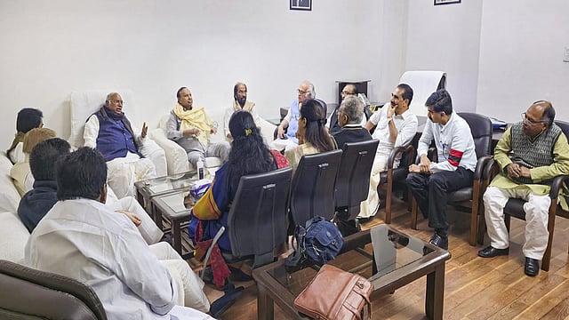 The floor leaders met at the Parliament House office of Congress president and Rajya Sabha LoP Mallikarjun Kharge.