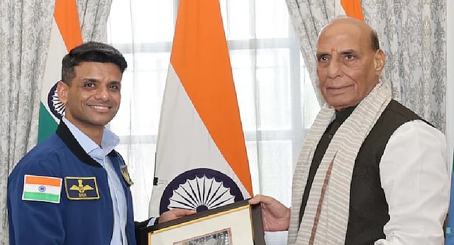 New Delhi | After a successful mission to the International Space Station (ISS), Indian astronaut Shubhanshu Shukla on Thursday met Defence Minister Rajnath Singh, during which they discussed his space journey, the vital experiments he undertook in orbit, and Gaganyaan, India's pioneering human spaceflight programme.