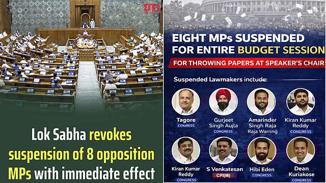 New Delhi | The Lok Sabha on Tuesday revoked with immediate effect the suspension of eight opposition members, who were suspended from the House on February 3 for "unruly" behaviour, after Congress leader K Suresh requested the House to consider the matter.