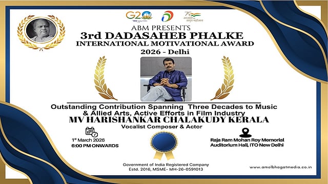 New Delhi | MV Harishankar Wins the ABM's Dadasaheb Phalke International Motivational Award 2026. Receiving the Award and Felicitation with the Grand Ceremony on 1st March at Raja ram Mohan Roy Auditorium ITO Delhi.