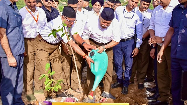 Bhagwat planted a sapling in Matru Van Park in the Alwar city. Union environment minister Bhupendra Yadav, state environment minister Sanjay Sharma and others accompanied him who came to Alwar on Friday.