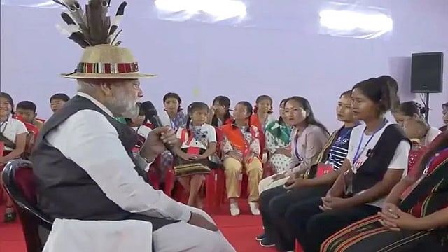 Churachandpur | Prime Minister Narendra Modi on Saturday interacted with several people displaced due to Manipur ethnic violence at Churachandpur's Peace Ground, officials said.
