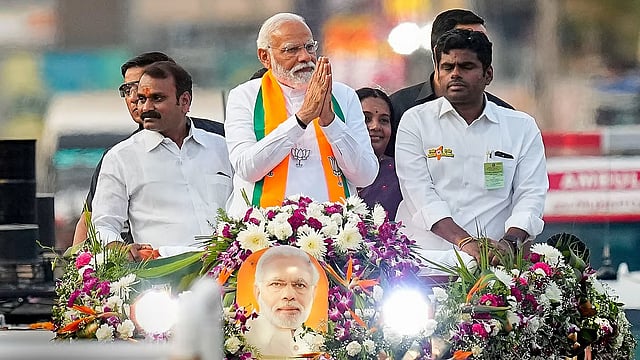 Following his arrival, the prime minister held a roadshow from the airport to CODISSIA (Coimbatore District Small Industries Association) grounds, a distance of approximately 2 kilometers and people and party workers lined up on both sides of the road to welcome him.