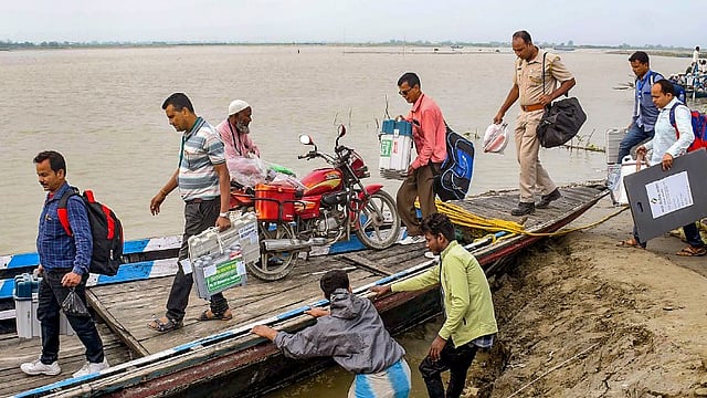In Assam, Sashastra Seema Bal troops have been deployed on boats to polling stations in South Salmara Mankachar PC for the third phase of elections. In Bihar, polling personnel navigated the river Kosi on boats to reach polling stations in Supaul, the EC said.