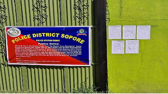 Srinagar | Jammu and Kashmir Police on Thursday attached a property worth Rs one crore in Sopore area as part of its crackdown on terror activities.