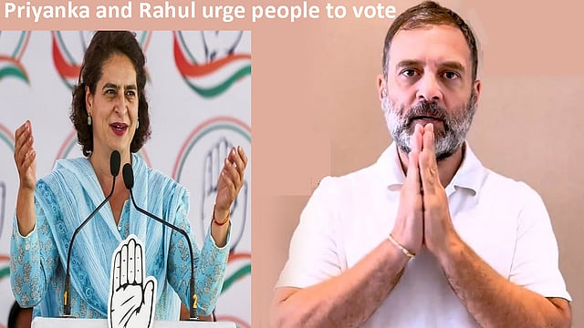 New Delhi | Congress leaders Rahul Gandhi and Priyanka Gandhi Vadra urged people on Tuesday to vote in large numbers in the third phase of the ongoing Lok Sabha polls, asserting that this is an election to protect democracy and the Constitution.