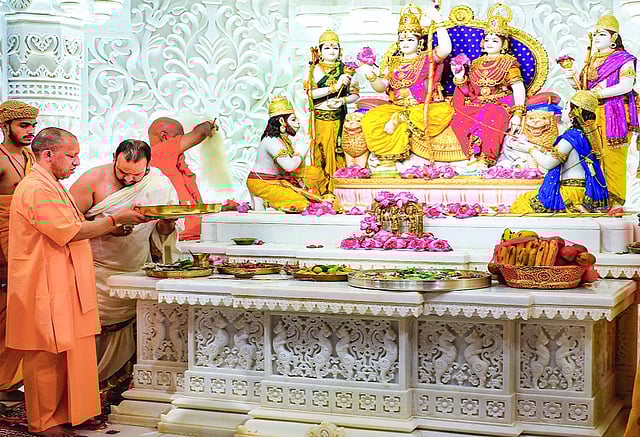 Ayodhya (UP) | The Ram Darbar installed on the first floor of the Ram Mandir in Ayodhya was thrown open for devotees on Saturday, officials said.