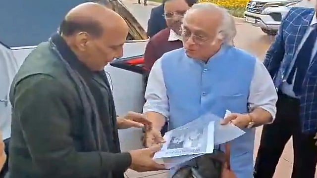 New Delhi | Congress leader Jairam Ramesh on Thursday gave to Defence Minister Rajnath Singh a copy of diary entries in Gujarati of Vallabhbhai Patel's daughter that appeared in a book, and told him that there was no mention in them of his claim that Jawaharlal Nehru wanted to build the Babri masjid using public funds.