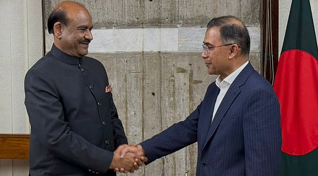 Dhaka | Lok Sabha Speaker Om Birla on Tuesday met Tarique Rahman shortly after the BNP leader was sworn in as Bangladesh's Prime Minister and handed over a congratulatory letter from his Indian counterpart Narendra Modi, officials said.