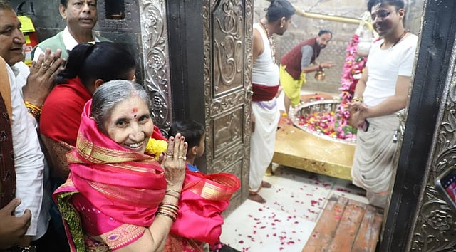 On reaching the temple, one of the 12 Jyotirlingas of Lord Shiva, Jashodaben walked barefoot from the Neelkanth Gate. She then boarded an e-cart to reach the main worship area.