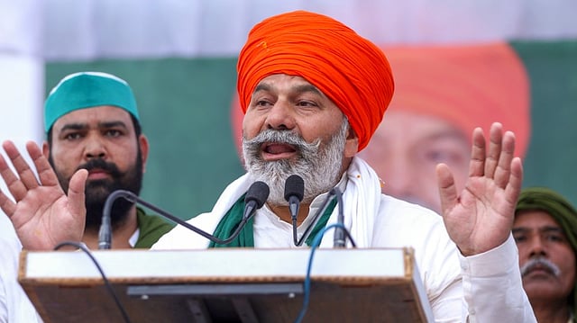 On the Agniveer scheme for short-term military recruitment, Tikait claimed that those recruited under it will have to work as security guards in the coming days and claimed that a particular business group needs 25,000 security guards.