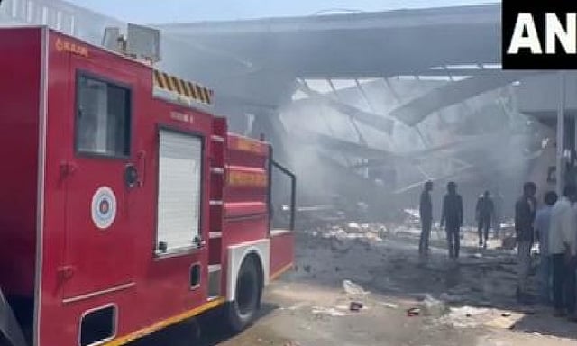 Officials said firefighters from the Deesa municipality doused the blaze, and an operation was underway to rescue those trapped in the rubble.