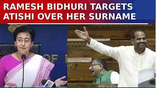 BJP's Kalkaji candidate Bidhuri on Sunday courted controversy for his remarks on Atishi's surname.