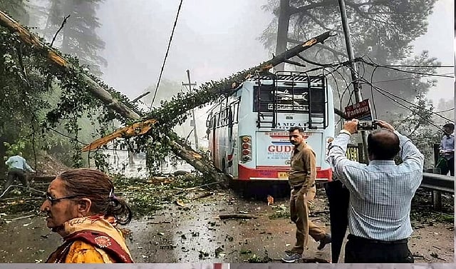 A vehicle was buried under a landslide near Thalot in Mandi, while the Nakrod-Thalli Bridge was washed away in the Chamba district. In Shimla, the Jubbarhatti road was shut, leaving office goers stranded for hours.