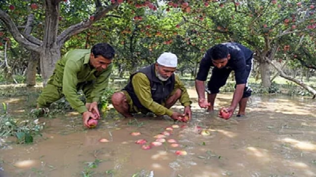 Srinagar | Flash floods in Kashmir have destroyed standing paddy -- mainly rice and apple -- spread over thousands of acres in four southern districts of the valley, leaving farmers staring at cumulative losses running into hundreds of crores.