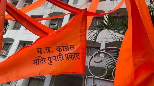 Bhopal | Madhya Pradesh Congress chief Kamal Nath on Sunday questioned whether the "bhagwa" colour is the trademark of BJP as he reached out to Hindu priests at the state party office decorated with saffron flags and banners.